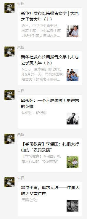 支部书记朱权同志在支部微信群里分享《新华社发布长篇报告文学|大地之子黄大年》,《郭永怀:一个不应该被历史遗忘的英雄》,《李保国:扎根太行山的“农民教授”》和《踏过平庸,追求无垠——中国天眼之父南仁东》等学习资料供支部成员进行学习。