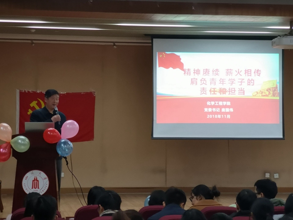 2018年11月18日上午,德赢AC米兰中国官方网站党委书记庞国伟走进“求是学堂”暨学院团校,为青年学子作了“精神赓续、薪火相传,肩负青年学子的责任与担当”为主题的报告。学院学生工作组喻可乐、龙柯老师参加报告会。