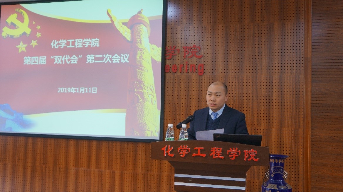 会议听取了学院党委书记庞国伟同志代表学院所做的《学院工作报告》和《财经工作报告》。庞书记在报告中全面回顾和总结了2018年全院工作。2018年是全面贯彻党的十九大精神的开局之年,是庆祝改革开放40周年,也是学院深化改革创新、加快推进“双一流”建设和校院两级管理体制改革的关键之年。学院全体师生深入学习贯彻习近平新时代中国特色社会主义思想和党的十九大精神,科学研究、人才培养、党建工作和队伍建设等方面都取得了显著成就:褚良银教授等获得2018年度国家技术发明奖二等奖;杰出教授钟本和先生获得“2018年度何梁何利奖”;学院获准国家重大项目2项,直接经费1800多万元。由钟本和教授带领团队入选全国首批“全国高校黄大年式教师团队”;梁斌教授获得国家级教学成果奖一等奖,宋航老师当选“四川省优秀教师”。同时,我们的党员师生充分发挥先锋模范作用,化学工程系党支部成功入选“全国党建样板支部”,研究生过程装备与安全科学党支部获得全国高校“百个研究生样板党支部”,党员罗杰同志获评“2017年度四川省优秀共青团员”和四川“勤学奋进新青年”。庞书记也代表学院对全院师生员工和离退休老同志在过去一年对于学院工作的帮助和支持表示感谢。随后,庞书记结合学校“两个伟大”的全面推进和校院两级管理体制改革,提出了2019年的工作展望,他希望全院师生共同努力,集中精力抓好一流拔尖人才、一流师资队伍、一流学科平台、一流成果转化机制、一流国际合作交流、一流环境条件建设,全力推进一流学科、一流专业建设,为早日建成一流化工学院而努力奋斗!