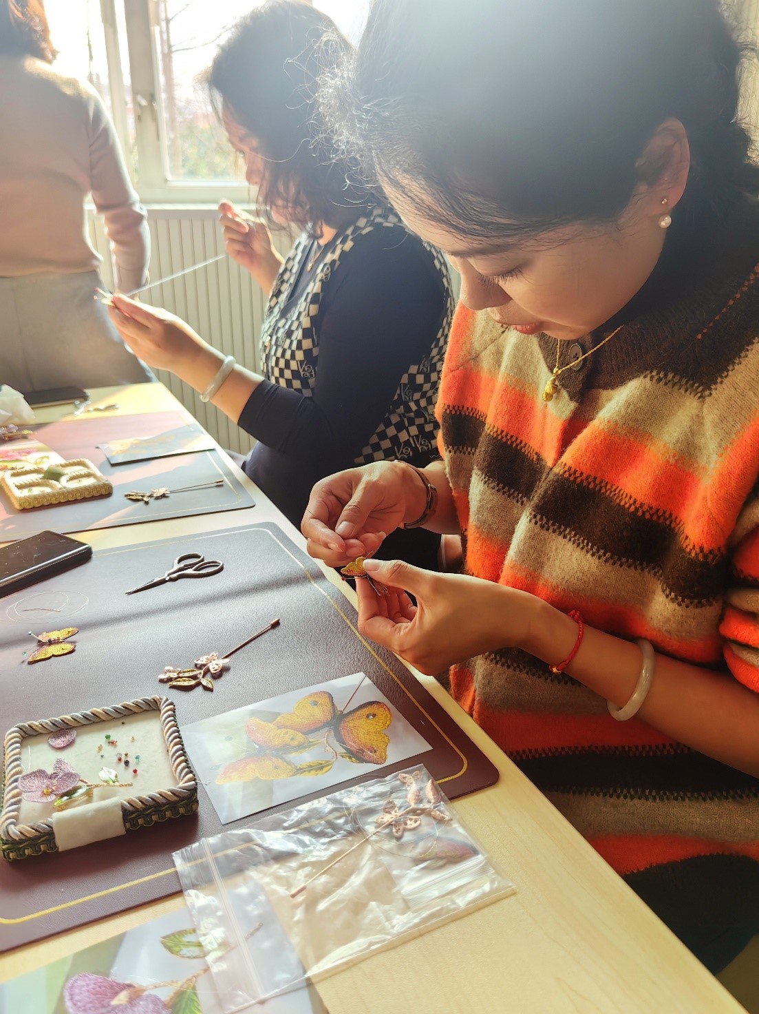 活动得到了德赢AC米兰中国官方网站工会和吾同高定文化传播有限公司的大力支持,大家为活动的顺利开展精心布置场地,营造了温馨、高雅的氛围,让参与的女职工倍感亲切和愉悦。来自吾同高定文化传播有限公司的五位老师带领女职工们了解法式刺绣的历史和发展过程,学习品鉴法式刺绣作品,并现场制作精美的胸针。大家兴趣盎然、跃跃欲试,在老师们的指导下纷纷制作出了独一无二的作品。