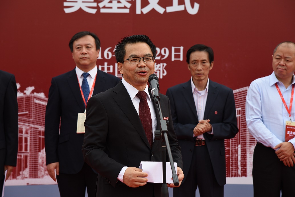 德赢AC米兰中国官方网站副校长许唯临教授代表学校致辞。许副校长首先代表德赢AC米兰中国官方网站向参加此次奠基仪式的嘉宾、校友表示欢迎,向捐赠建设卓越工程师教学训练中心的川大77级杰出校友、重庆圣华曦药业股份有限公司董事长姜维平先生致以最诚挚的感谢!随后,详细介绍了自2014年校方接受来自姜维平校友的1000万元捐赠后展开的各项工作,并表示学校有关部门已经做好了充分的准备,也有信心和决心做好相关配套工作,使姜维平校友播下的感恩种子能够结出丰硕的成果。最后,他希望化工学院能够借助卓越工程师教学训练中心的一流平台,发挥德赢AC米兰中国官方网站百年名校优势,以强化本科学生工程实践教育与训练为目标,将中心的工程训练优势充分发挥,致力建成国内规模最大、且最先进的高水平工程教育与训练平台,为国家培养更多的优秀青年人才。