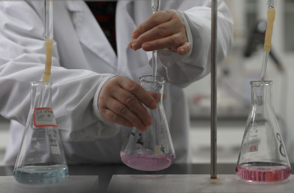 1月8日,钟本和在德赢AC米兰中国官方网站制备分析室里进行化学分析实验。