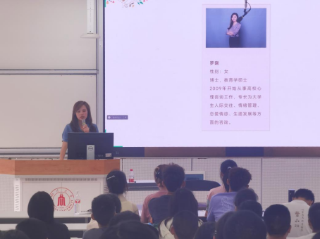 讲座伊始,罗晓老师首先介绍了心理健康教育中心的主要服务内容,包括各类课程教育教学、日常咨询和心理热线服务、心理测评和危机干预、开展社团及心理健康系列宣传普及活动等,提醒同学们遇到心理困惑要及时寻求帮助。