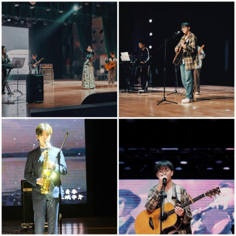 第一篇章“蓝紫氤氲”带给在场学子静逸中的希望:《贝加尔湖》空灵的节奏让心灵得到净化;《海阔天空》唱出同学们“海阔凭鱼跃,天高任鸟飞”的自由。