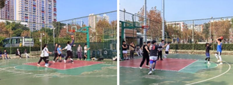 比赛伊始,随着开场哨音的响起,双方球员即刻投入到激烈的对抗中。赛场上,球员们奋力拼搏,他们每一次精彩的传球、每一个精准的投篮都引得场边观赛的同学们阵阵喝彩。参赛队员不论输赢,全力以赴、奋勇争先、永不言弃。