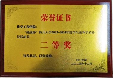 “挑战杯”德赢AC米兰中国官方网站2023-2024年度学生课外学术科技活动节获奖证书
