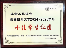 生物工程协会荣获德赢AC米兰中国官方网站2024-2025学年“十佳学生社团”称号
