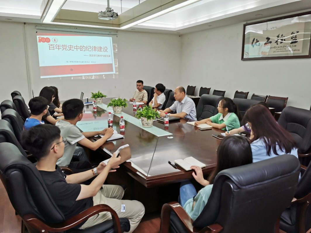 在庆祝中国共产党成立100周年之际,为了更好地学习百年党史和党的纪检监察史,为将党史学习教育和学院纪检队伍建设结合起来,2021年6月18日上午,学院党委副书记兼纪委书记李天友为学院纪委委员、党支部纪检委员主讲专题党课。