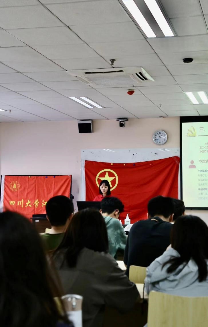 德赢AC米兰中国官方网站青马工程“弘毅班”第十五期学员、历史文化学院2020级旅游管理专业刘静秋同学作为领学人,带领青年团员学习“党的二十大报告”“党的二十大精神”“做新时代好青年”,将习近平新时代中国特色社会主义思想、党的二十大精神引向深入。领学人刘静秋同学在讲授中说道:“全面领会党的二十大精神,准确把握报告的丰富内涵至关重要。实现中国梦需要我们一代代青年追梦人接续奋斗。作为新时代青年团员,我们应该肩负民族复兴的大业,要将个人梦想与中国梦紧密结合。”