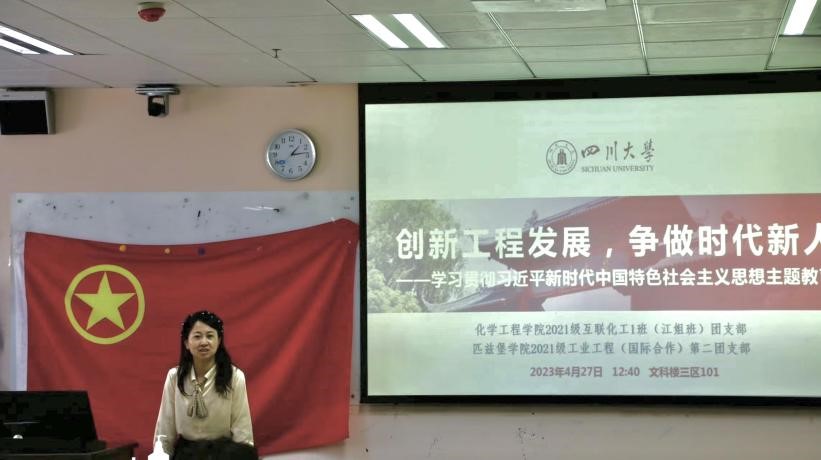 为进一步学习贯彻习近平新时代中国特色社会主义思想,学懂弄通做实党的二十大精神,引导青年团员不断增进对党的创新理论的认识,并引领青年将个人成长与时代发展融为一体。2023年4月27日,德赢AC米兰中国官方网站互联化工1班团支部与匹兹堡学院2021级工业工程(国际合作)第二团支部四月联合主题团日活动于文科楼三区101顺利举办,结合专业特色开展习近平新时代中国特色社会主义思想主题教育学习会。与会人员有德赢AC米兰中国官方网站团委书记李珍珍老师和两团支部全体成员。