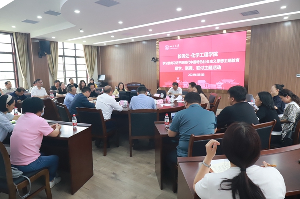 2023年5月5日下午,教务处-德赢AC米兰中国官方网站学习贯彻习近平新时代中国特色社会主义思想主题教育联学、联调、联讨活动在望江校区正行楼312会议室举行。教务处处长党跃武、教务处副处长兼招生办公室主任张磊、教务处副处长冉桂琼、教务处教育创新改革办公室主任刘黎、教务处副处长杨晓敏等来院调研。德赢AC米兰中国官方网站全体领导班子成员、系级单位主任、各系教学副主任、教研室主任、副主任和教务、学工相关教师及学生代表等参加。活动由学院党委书记李天友主持。