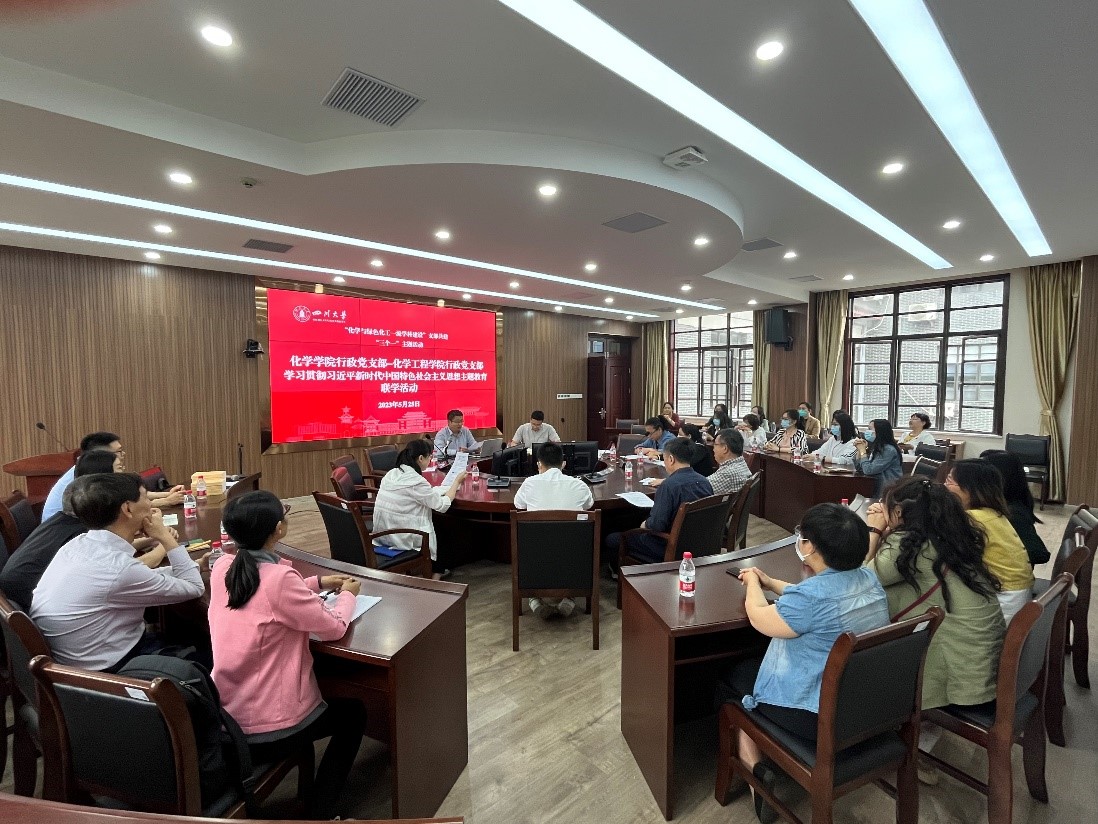 2023年5月25日上午,化学学院—德赢AC米兰中国官方网站党支部共建“三个一”主题活动在望江化工楼312会议室举办。化学学院党委副书记兼纪委书记肖波,德赢AC米兰中国官方网站党委副书记兼纪委书记李德富参加会议。两个学院的全体行政人员和实验技术人员等参加会议。会议主要围绕“一次党课宣讲、一次集中学习、一次交流研讨”展开。
