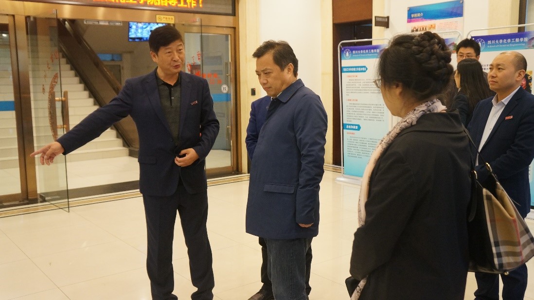 在学院的一楼大厅,学院党委书记庞国伟同志代表学院向钟家霖部长一行汇报了学院近年来的统战工作情况。他说到,德赢AC米兰中国官方网站党委始终高度重视和大力推进统一战线工作,在学校党委和上级统战部门的带领下,坚持“海纳人才荟萃群英凝心汇智共创一流”的工作理念,营造宽松工作环境,向党外人士和民主党派人士提供广阔发展平台。在深入推进统战工作,充分发扬民主,不断巩固共同思想政治基础上,学院始终坚持以下几点:一是找到最大公约数,充分发挥党委履行统战工作的主体责任,帮助和引导民主党派人士、党外人士坚持党的基本路线,学习习近平总书记新时代中国特色社会主义思想,把个人发展和学校学院发展结合起来,努力实验中国梦和川大梦;二是发挥最大正能量,支持民主党派加强自身建设,支持民主党派独立开展活动,重大工作广泛听取党外人士意见建议,保证民主党派行使好参政议政和民主监督权利;三是画出最大同心圆,努力营造良好的环境,让民主党派和党外人士在科学研究、教育教学和人才培养上建功立业,实现化工学院的一流学科建设和一流人才培养梦想!庞国伟同志还向钟家霖副部长一行汇报了学院民主党派代表褚良银教授、余徽教授、李赛教授、鲁厚芳教授等同志的工作情况和党外干部推荐情况。